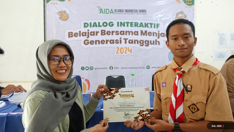 Aliansi Indonesia Damai- Awal Februari 2024, AIDA menggelar kampanye perdamaian bertajuk Dialog Interaktif: “Belajar Bersama Menjadi Generasi Tangguh” di SMAN 1 Setu, Kabupaten Bekasi, Jawa Barat. Terhitung 52 siswa di sekolah tersebut berpartisipasi aktif dalam kegiatan.