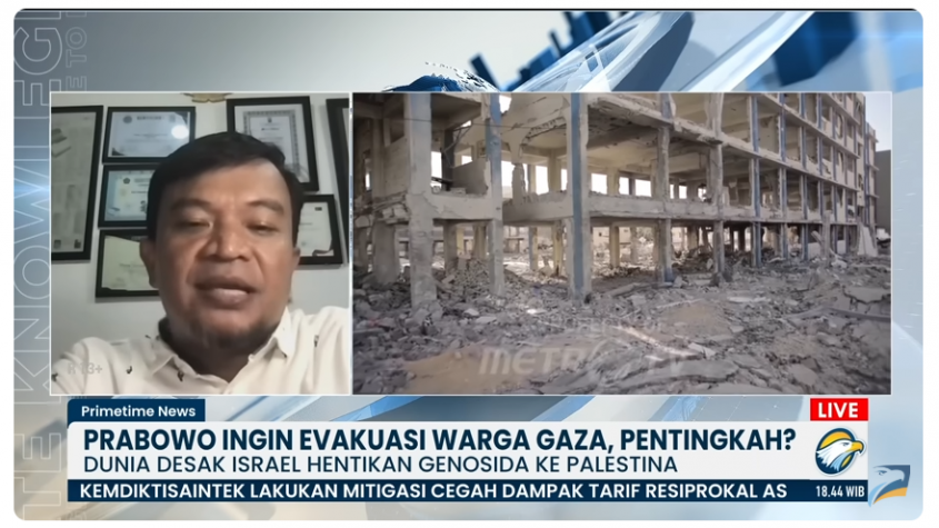 Aliansi Indonesia Damai- Hasibullah Satrawi, Direktur AIDA, yang juga pengamat Timur Tengah, memberikan pandangan tentang rencana Presiden RI, Prabowo Subianto, untuk melakukan evakuasi warga Gaza yang terluka.