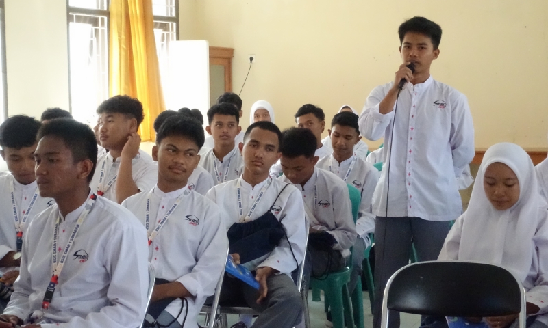 Salah seorang siswa SMAN 1 Sukahaji Majalengka menyampaikan pembelajaran yang dia dapat dari kegiatan Dialog Interaktif “Belajar Bersama Menjadi Generasi Tangguh” pada Kamis (05/10/2023). Ia menyampaikan, "Kita harus bisa memaafkan orang yang telah menyakiti kita, menghindari pergaulan yang tidak benar agar terhindar dari kelompok ekstrem, dan berbagai hal negatif lain. Kita juga tidak boleh membalas kekerasan dengan kekerasan agar kedamaian tetap terjaga."