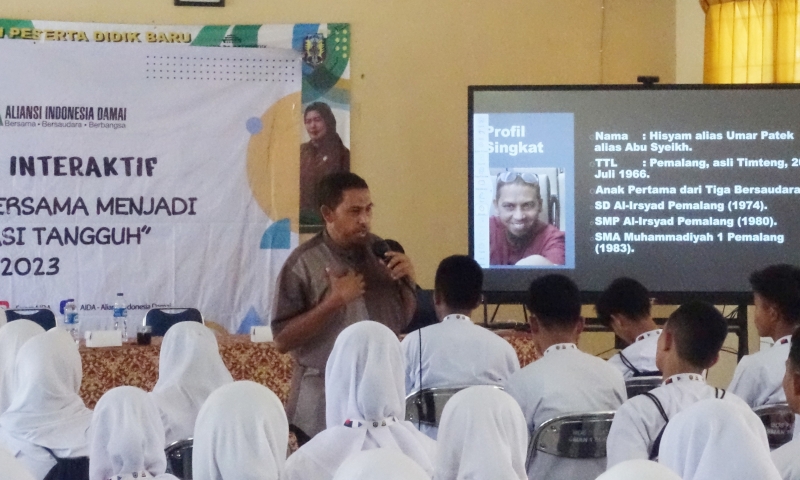 Aliansi Indonesia Damai- Lima puluh pelajar SMAN 1 Sukahaji Majalengka, Jawa Barat Barat, mengikuti kegiatan Dialog Interaktif “Belajar Bersama Menjadi Generasi Tangguh” yang diselenggarakan Aliansi Indonesia Damai (AIDA) pada Kamis (05/10/2023). AIDA menghadirkan Tim Perdamaian yang terdiri dari mantan pelaku terorisme dan korban terorisme untuk berbagi kisah ketangguhan kepada generasi muda. Diharapkan, para pelajar dapat mengambil pembelajaran tentang pentingnya membangun karakter damai.