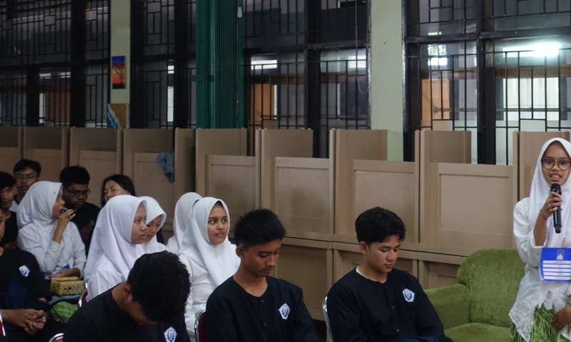 Aliansi Indonesia Damai- Lima puluh pelajar SMAN 5 Bogor, Jawa Barat, mengikuti kegiatan Dialog Interaktif “Belajar Bersama Menjadi Generasi Tangguh” yang diselenggarakan AIDA pada Rabu (15/11/2023). AIDA menghadirkan Tim Perdamaian yang terdiri dari mantan pelaku terorisme dan korban terorisme untuk berbagi kisah ketangguhan kepada generasi muda. Diharapkan, para pelajar dapat mengambil pembelajaran tentang pentingnya membangun karakter damai dalam kehidupan.